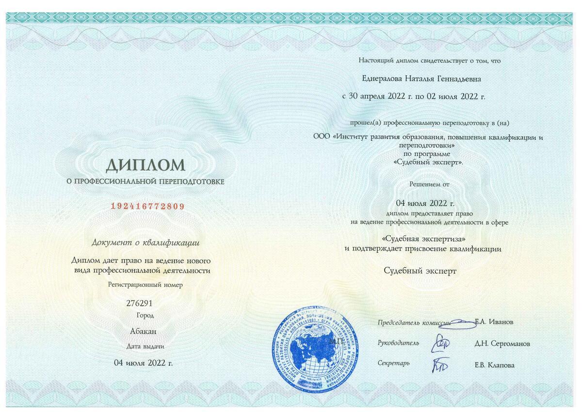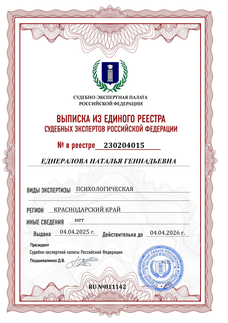 Выписка из единого реестра судебных экспертов Российской Федерации