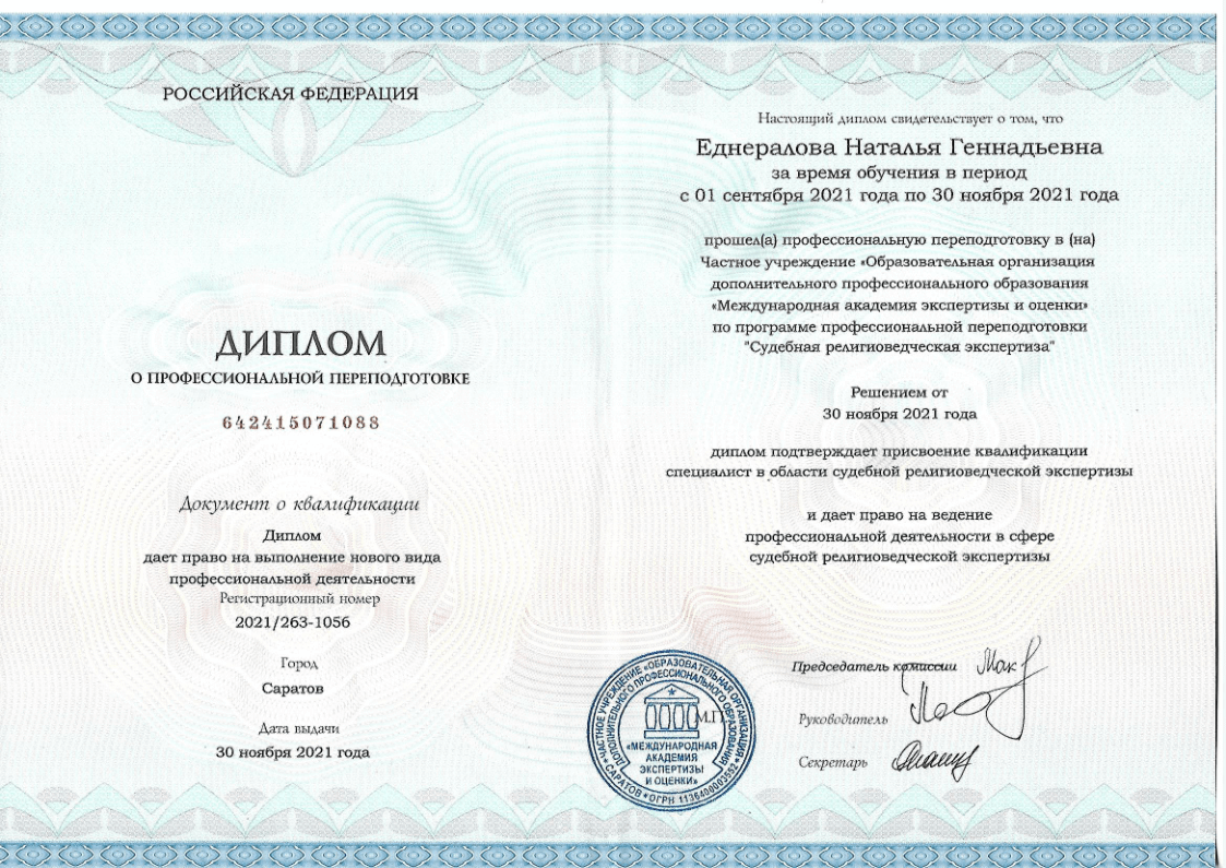 Программа профессиональной переподготовки: судебная религиоведческая экспертиза